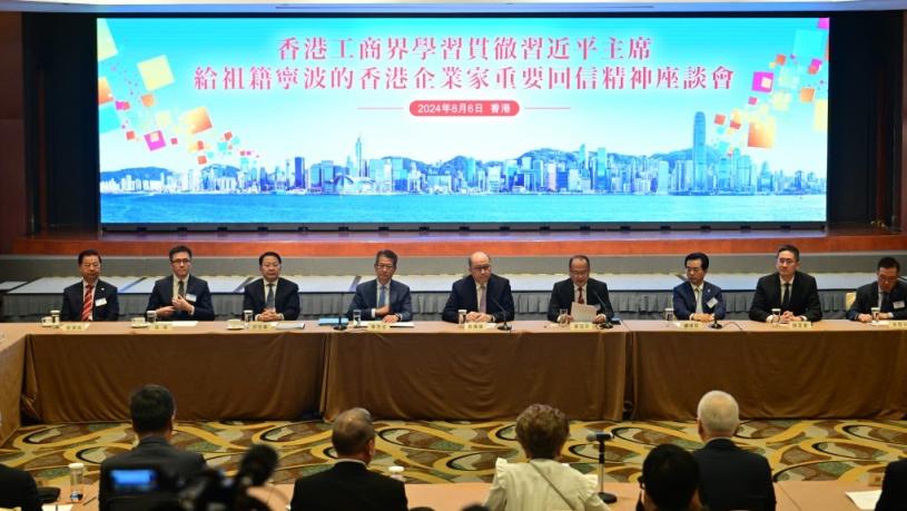 本港工商界昨舉行座談會,中聯辦主任鄭雁雄宣讀中央港澳辦主任夏寶龍指導意見指,要將學習貫徹習近平回信精神,與三中全會精神、國家改革開放大局及港澳實際結合起來 ,充分發揮「一國兩制」優勢。夏寶龍又希望港澳社會特別是工商界以習回信精神為指引,積極思變應變求變,把愛國愛港愛澳精神轉化為實際行動。