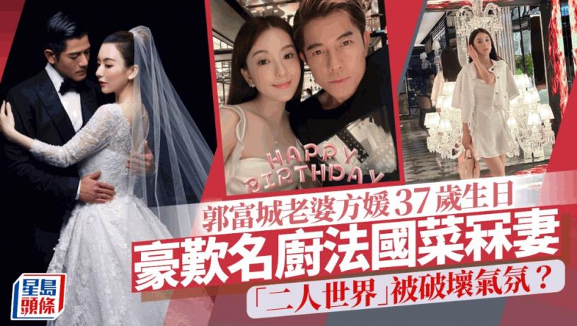 58歲的郭富城(Aaron)將於下星期二(13日)假紅館舉行《郭富城ICONIC世界巡迴演唱會》,愛妻號的郭富城近日忙於為演唱會綵排,但老婆方媛昨日(5日)迎來37歲生日,他不單送上鮮花,更帶老婆品嚐法國名廚Anne-Sophie Pic主理的高級法國菜,方媛今日(6日)也在社交網貼出溫馨慶生照,她表示:「被愛包圍,生日晚餐有2個小調皮。」