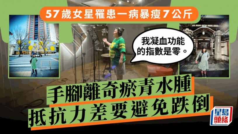 57歲台灣女星林美秀演技出眾,曾奪得金馬獎、金鐘獎、台北電影節的女配角獎項,日前林美秀現身節目《命運好好玩》,分享出道至今的心得。林美秀近來推出新專輯,坦言在籌劃時恐慌焦慮,在發片前突然變瘦,一量才發現體重掉了7公斤,身體出現瘀青,未料是患有後天血友病。