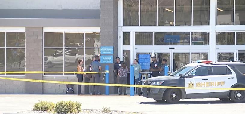 圖為河濱縣一間沃爾瑪發生疑似隨機命案。NBCLA新聞畫面