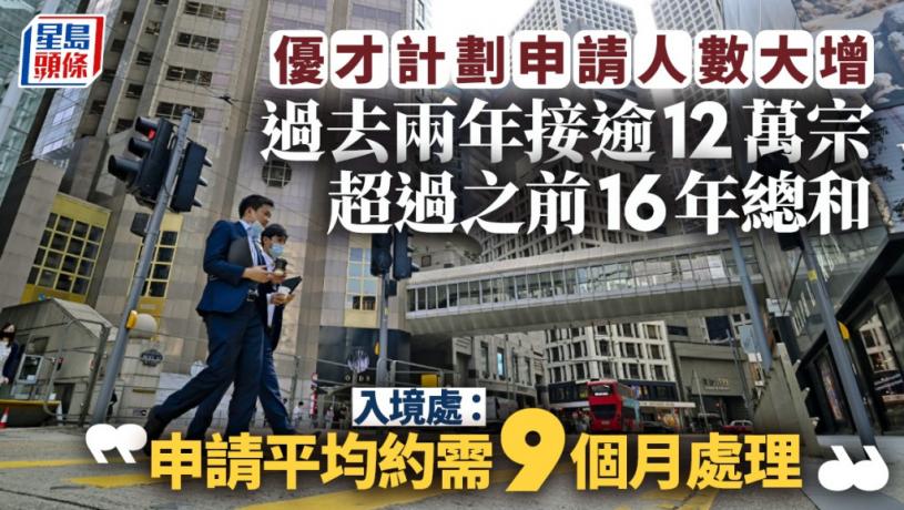 優才獲批究竟需多久?入境處回覆《星島》查詢稱,由於申請數量龐大,現時每宗申請平均約需9個月處理,「諮詢委員會因應申請人的背景及成就作出甄選,由於甄選程序不同,優才計劃與其他輸入人才計劃比較,處理申請個案需時較長」。