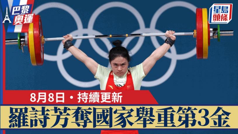 國家隊的羅詩芳於巴黎奧運舉重女子59公斤級決賽,抓舉先舉起107公斤打破奧運紀錄,挺舉再造出134公斤同樣打破奧運紀錄,最後以總成績241公斤贏得舉重隊今屆第3金。