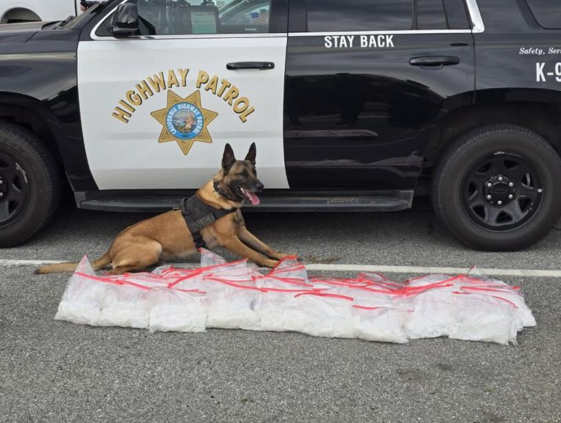 加州公路巡警(CHP)警犬立下大功,在一輛汽車上發現俗稱冰毒的甲基苯丙胺毒品,協助警方拘捕一名37歲男子。