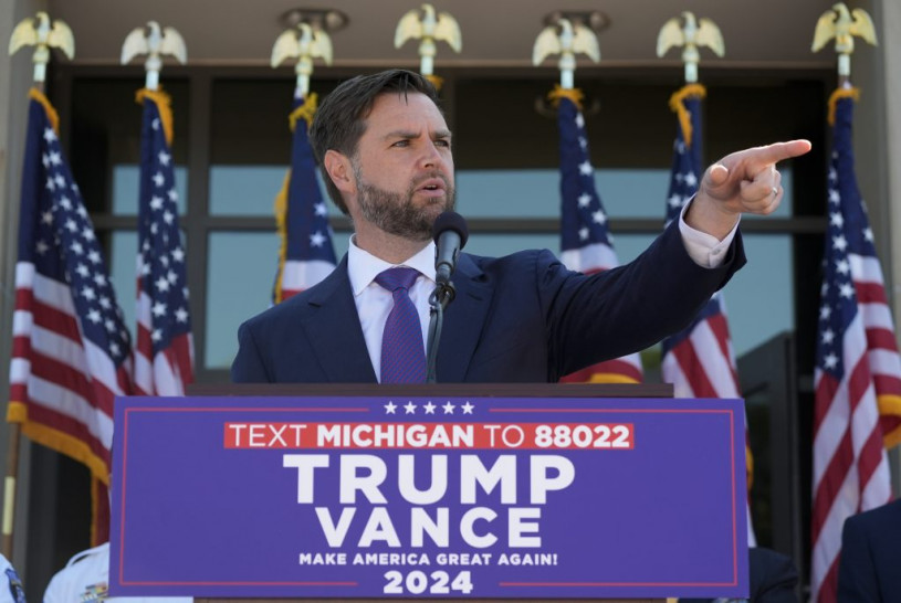 共和黨副總統候選人萬斯7日在密西根州競選活動上批評沃爾茲。美聯社