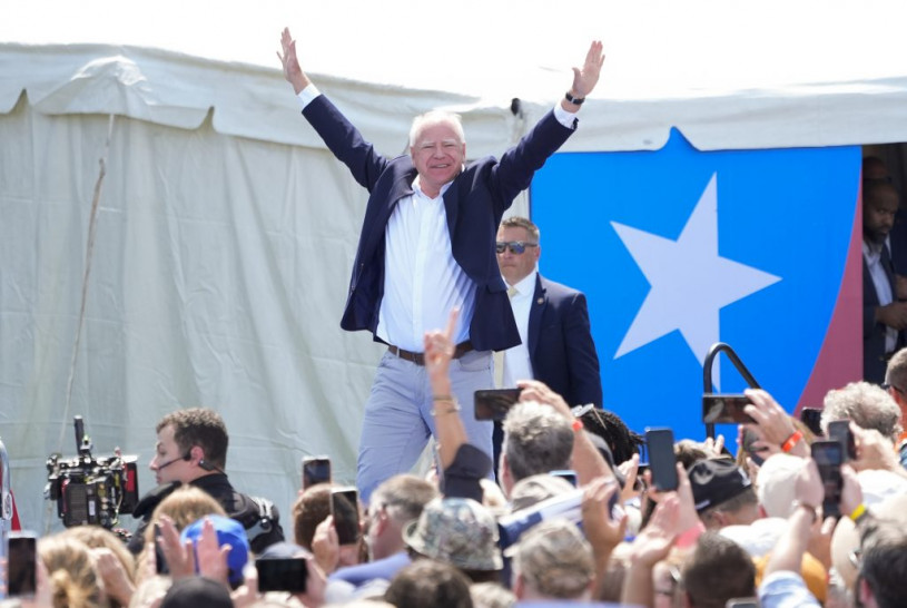 民主黨副總統候選人沃爾茲7日於威州競選活動中上台。美聯社