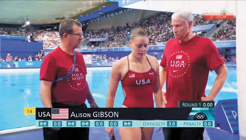 跳水項目,既有人拿到全部10分滿分,也有人得到全部0分!7日女子3米板預賽,25歲美國選手吉遜(Alison Gibson)第一跳出現嚴重失誤,翻騰時腳打到跳板,導致「炸魚落水」,結果7名裁判一致判為0分,最終墊底出局。