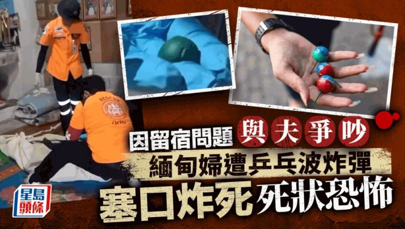 泰國夜豐頌府5日發生一宗駭人聽命的兇殺案。1名54歲緬甸男子疑因醉酒,將一個乒乓波炸彈塞入53歲妻子口中引爆,將其炸死。事後疑兇跑出家外求助及報警,但警方調查後發現所有線索均指他是兇手,於是將其拘捕。