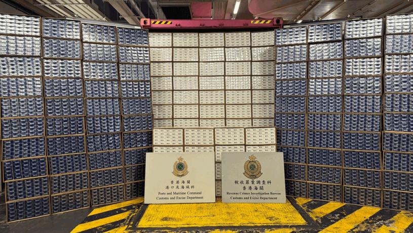 香港海關於7月11日、7月17日和8月7日在葵涌偵破3宗以海運貨櫃走私香煙案件,檢獲共約2850萬支懷疑私煙,估計市值共約1.28億元,應課稅值共約9400萬元。