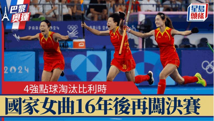 國家女子曲棍球隊周三於巴黎奧運女子曲棍球準決賽,法定時間與歐洲勁旅比利時賽和1:1,憑守門員葉嬌於點球大戰救出對手3球,點球勝3:2,總分4:3淘汰比利時,繼2008北京奧運之後再闖奧運決賽,平了國家女子曲棍球隊於奧運的最佳成績。