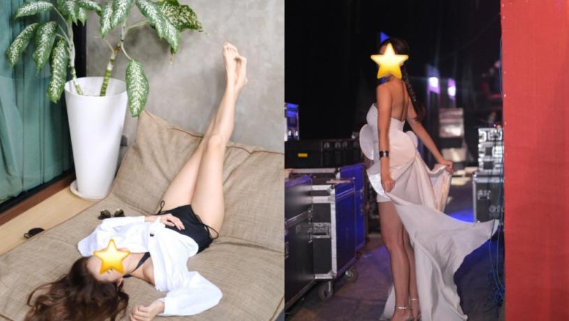 劉穎鏇日前在社交新相焦點在其白滑長腿上,在拍攝角度與光線下,疑似無下裝,超誘人!