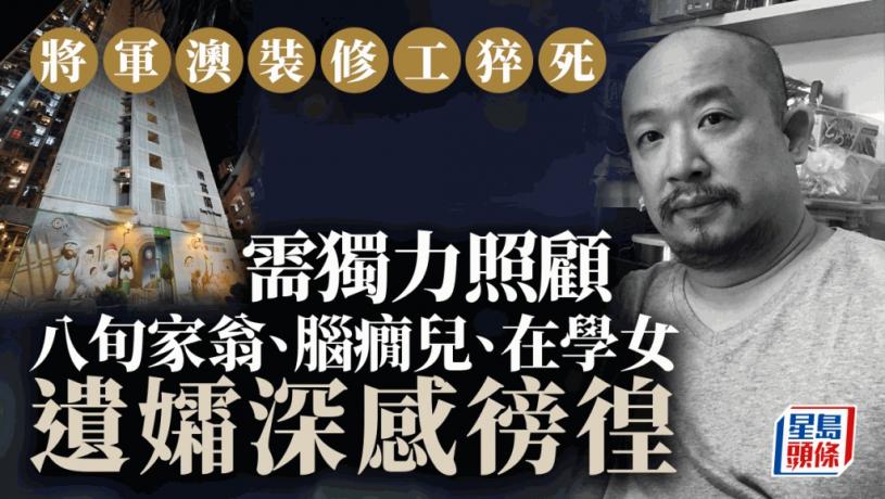 將軍澳唐明苑一梯間,昨日(8月8日)下午時分,54歲裝修男工黃杰雄休息期間猝逝。遺孀黃太今日(8月9日)到富山殮房認屍,神情哀傷。工業傷亡權益會表示,黃太不僅痛失摯愛,現時還要獨力照顧8旬家翁、腦癇24歲大仔及仍在學12歲細女,面對殮葬、醫藥及日常生活等等所費不菲,令她對前路倍感徬徨,希望有心人可以相助。