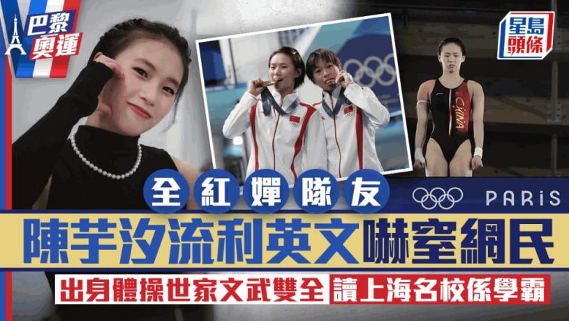 中國跳水隊小天后全紅嬋與陳芋汐在巴黎奧運出戰女子跳水女子10米台決賽,中國隊包辦金、銀牌。18歲的陳芋汐連續兩屆奧運屈居銀牌敗給全紅嬋,她受訪時都眼濕濕令網民心疼。陳芋汐家庭背景及學歷遠勝拍檔,陳芋汐出身體操世家,她3歲已經受訓。而陳芋汐亦是一名學霸,她就讀上海名校同濟大學,成為國家隊泳手覃海洋的師妹,並說得一口流利英語,絕對是「文武雙全」。