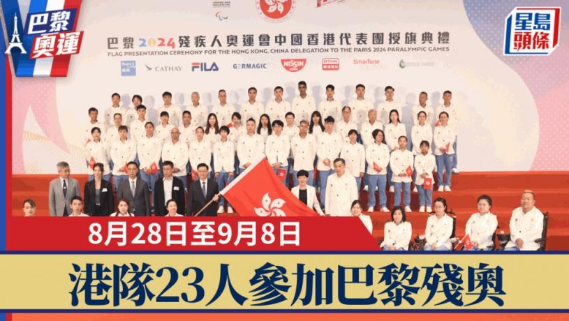 巴黎殘奧會將於8月28日至9月8日舉行,港隊今次派出23位選手參與游泳、乒乓球、硬地滾球及輪椅劍擊等8個項目,大軍周五在政總舉行授旗禮,由特區行政長官李家超授旗。而「賽馬會優秀運動員獎勵計劃」下獎金亦加碼,個人及團體金牌獎金將增至150萬及300萬港元,獎金增幅接近9成。港隊今次由6朝元老的硬地滾球選手梁育榮及輪椅劍后余翠怡領軍,力求爭取佳績。