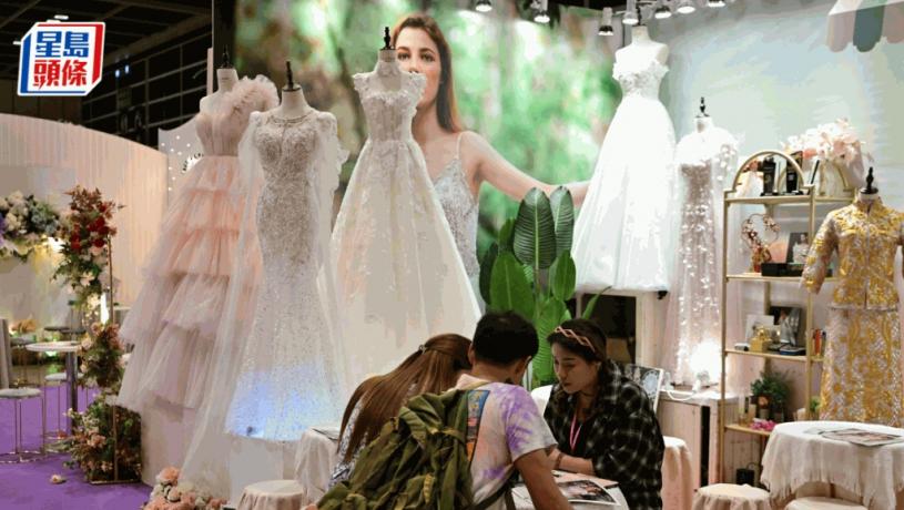 第115屆香港結婚節暨秋日婚紗展今天(9日)起一連三日在會展舉行,場內設九大展區、逾300個展位,涵蓋準新人籌備婚禮所需,如婚宴場地、海外婚禮及蜜月旅遊、婚紗攝影、婚嫁珠寶、場地布置、過大禮等等。惟參展商稱年輕人怕麻煩,比較少願意「大搞」婚宴,亦有台港準新人入場選購請帖款式及餅卡,打算台灣、香港兩頭擺酒。