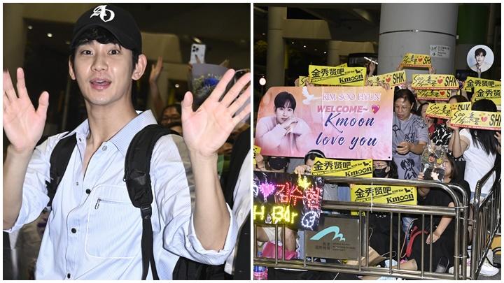 約於10時40分,身穿恤衫及長褲、戴著cap帽的金秀賢,在工作人員及保鏢的陪同下步出vip通道,粉絲立即尖叫聲不斷。金秀賢親民地向粉絲揮手,更照顧埋站在樓上及對面的粉絲,企高讓對面的粉絲能看到他,然後便乘車離去。