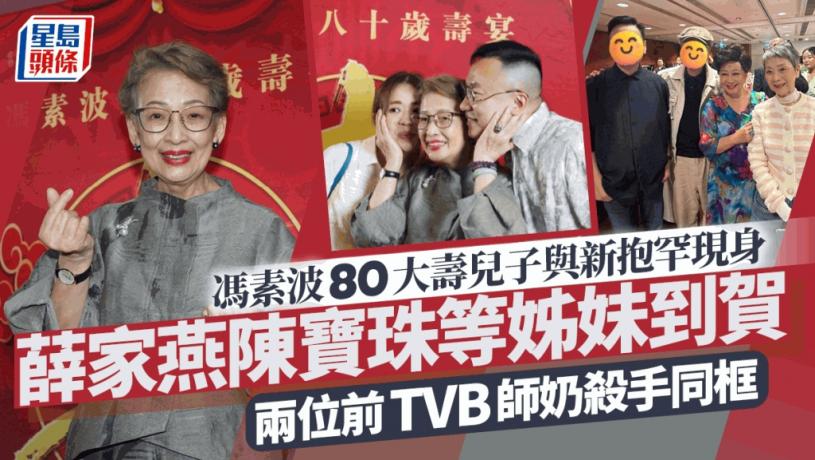 馮素波(波姐)日前慶祝80大壽,廣邀一班圈中好友及契仔契女出席,筵開十多圍壽宴,「七公主」大家姐生日,其餘幾位「公主」薛家燕、陳寶珠和沈芝華都合體到賀。馮素波妹妹馮素雲及弟弟馮克安一家也到場,大仔David和媳婦都專程由英國回港為媽媽賀壽。