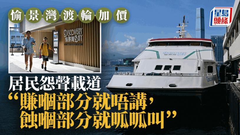 居民Judy表示十分無奈,「加價就有佢講冇你講」,雖然認為加價不合理,但表示居民並無話語權,只能接受。她稱近年來愉景灣商業活動不斷增加,雖然渡輪或有虧損,但「做生意唔係咁計,要拉上補下」,直言「賺嗰部分就唔講,蝕嗰部分就呱呱叫,唔可以咁樣分開黎計」。她觀察到,越來越多居民選乘愉景灣至東涌、欣澳的巴士,渡輪乘客減少,導致虧損是「必然定律」,但近來經濟不景,「好多人走,周圍又冇生意」,稱愉景灣本來衣食住行物價已高,舉例說區內一個飯盒也要索價65元,加價無疑是增加普通人經濟負擔。她亦嘆稱愉景灣不再是人們嚮往的幽靜村落。