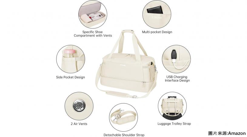 ETRONIK 女款健身包,完美融合了實用性與時尚感。這款多功能健身包專為現代女性設計,配備了 USB 端口,隨時為您的手機充電。超大容量設計讓您無需為收納而煩惱,內部的多個口袋為毛巾、化妝品、iPad等物品提供了專屬空間。濕衣服和乾衣物分開存放,保持整潔衛生。最貼心的是獨立鞋隔層,通風設計確保鞋子保持乾爽無異味。採用堅固的防水尼龍材料,搭配舒適的肩帶設計,讓您在健身、旅行或日常通勤中都能輕鬆攜帶。