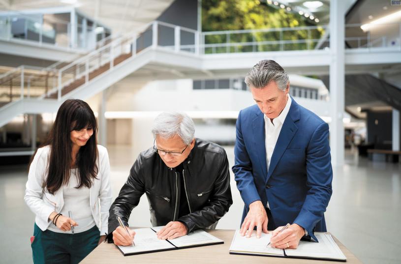 州長紐森與NVIDIA創辦人暨執行長黃仁勳本周簽署諒解備忘錄,著重三個重點,包括訓練學生、教師和就業人士、支持職位創造和推廣創新,以及利用AI解決挑戰改善加州人民生活。