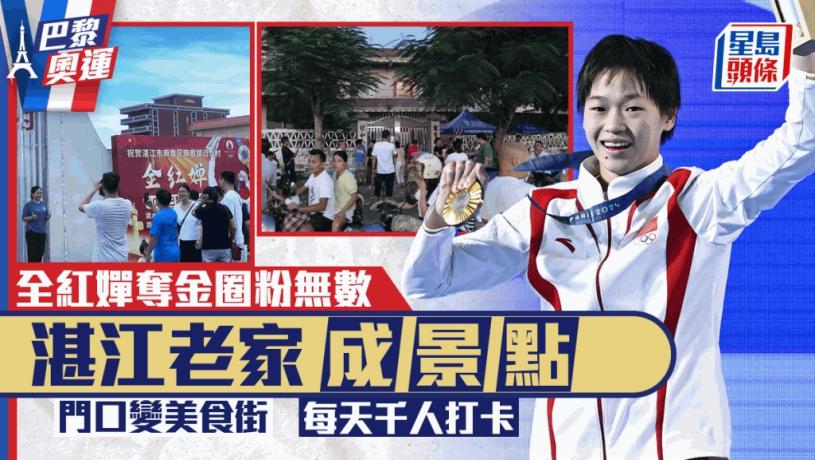 近日,隨著全紅嬋在巴黎奧運會女子單人10米跳台奪冠,她的老家廣東省湛江市麻章區邁合村也出現一波「全紅嬋熱」,吸引很多人前來打卡。她的家門口更是人來人往,網民拍攝到全紅嬋家門口成了小吃街。