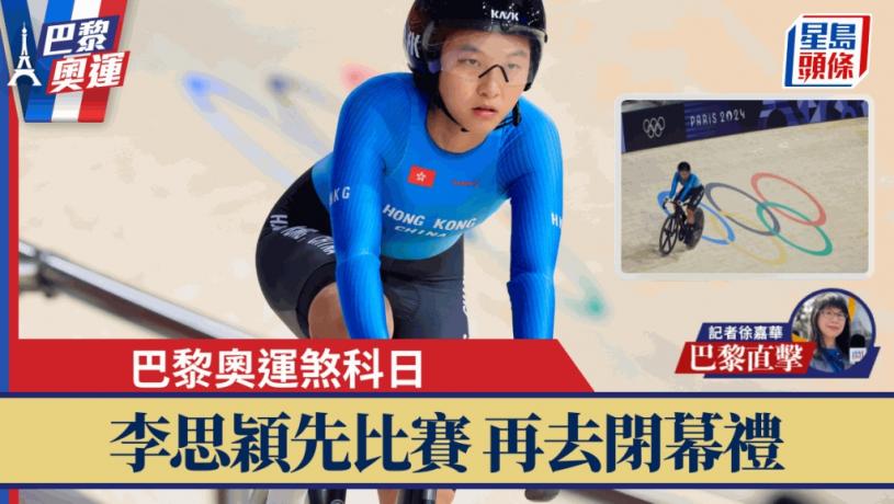 港將李思穎出戰場地單車全能賽最後一項記分賽,此項最後排名18位,綜合4項之後得分26分,在22人中排名20位。港隊代表團至此完成今屆巴黎奧運,分別有張家朗男子花劍衛冕、江旻憓女子重劍奪金、何詩蓓在女子100米及200米自由泳奪銅,單屆2金更是歷屆最佳戰績。