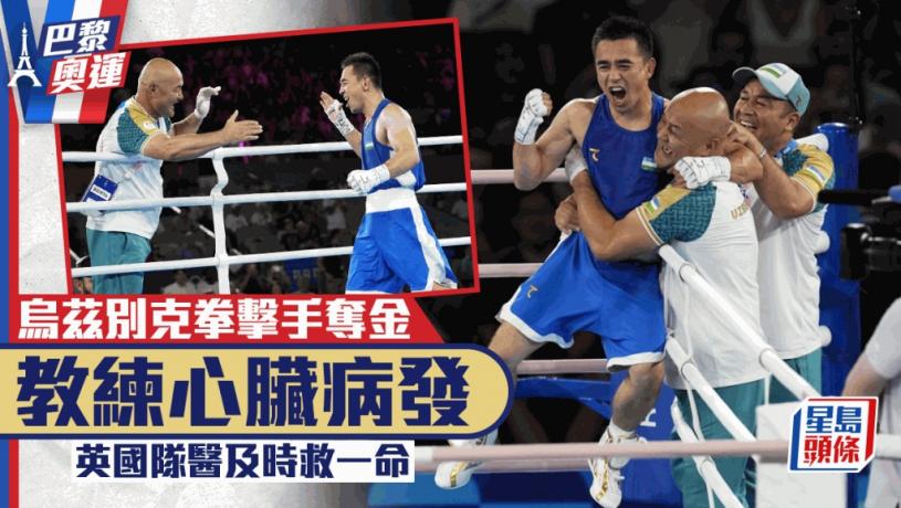 巴黎奧運落幕,烏茲別克拳擊手杜斯馬托夫(Hasanboy Dusmatov)於上周四(8日)在巴黎奧運男子51公斤級決賽中奪得金牌。拳擊隊總教練基里切夫(Tulkin Kilichev)在場邊非常開心,但樂極生悲,他突然心臟病發倒地不起。現場的英國隊隊醫即時進行急救,把他從鬼門關拉回來。