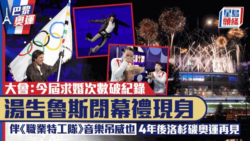 《職業特工隊》音樂響起,湯告魯斯吊威也現身閉幕禮場地表演。