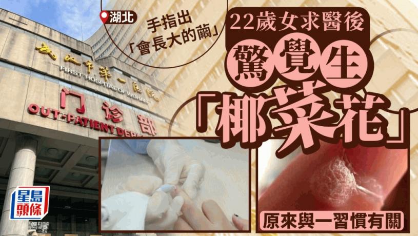 湖北武漢有年輕女士,經常去做美甲,結果手指出現許多不痛不癢的透明小包,求診後竟然是感染了俗稱「椰菜花」的HPV病毒造成的甲周尋常疣。