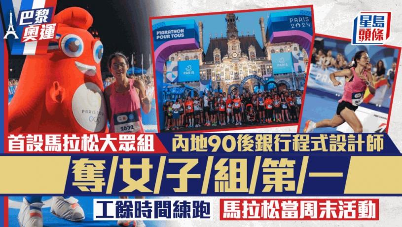 今屆巴黎奧運除了有男子、女子馬拉松比賽外,還有馬拉松大眾組,是奧運史上首次增設大眾馬拉松賽,讓平凡人一圓奧運夢。大眾組所跑的賽道與正賽完全相同,來自中國、正職是銀行程式設計師的黃雪梅成為女子組冠軍,首次參加全程馬拉松賽事的國家滑雪好手谷愛凌,亦都順利完賽。