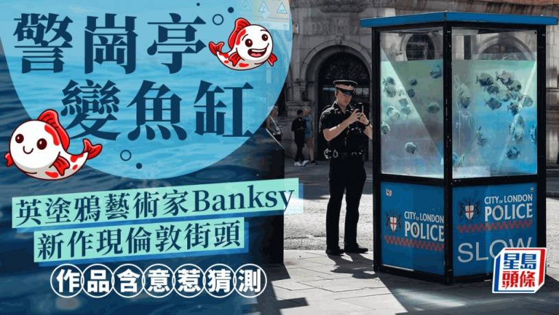 班克西(Banksy)新作品11日在倫敦亮相,似乎是以半透明噴漆在警察警衛亭玻璃窗上作畫,看起來有如一個巨大魚缸。