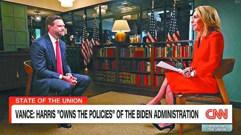 對於特朗普質疑賀錦麗「突然變成黑人」的問題,萬斯形容特朗普只是批評賀錦麗的「變色龍」本質,對方「非常虛偽」,為了迎合不同的民眾而改變自己形象,處理邊境移民、天然氣及能源政策時,立場也是反覆無常。萬斯又批評,民主黨批評共和黨保守派「不正常」的言論,基本上只是心理投射,將自己的問題轉移到別人身上,如同「校園霸凌行為」,同時質疑賀錦麗公開講話時只會依賴提詞器,根本沒有與民眾、媒體交流,拒絕回答任何棘手問題。本報訊
