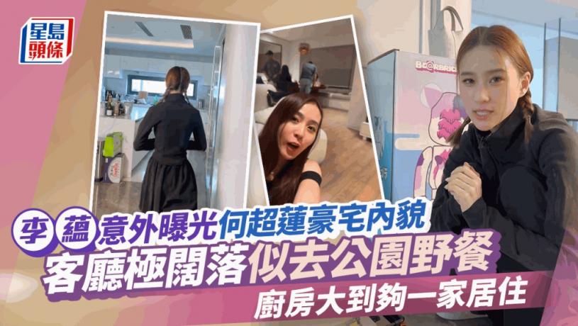 李蘊日前分享短片,並搞笑寫上:「去人屋企野餐,咁好咩?」原來當日李蘊與多位友人到何超蓮家中探訪,兩位好姊更在客廳席地而坐,地上放滿各種日式外賣美食,地上鋪了一張橙色墊子,就如真的去野餐,旁邊還放了部單車,非常有郊遊感覺,而何超蓮則穿上毛毛拖鞋示人。影片中所見,豪宅內以白色及木色簡約佈置為主,李蘊身後有張米色梳化,後面的飯廳位置同樣闊落,有巨型圓桌,且樓底極高,眾人還一起玩遊戲。何超蓮之前亦曾公開豪宅環境,在農曆新年前進行大掃除,意外曝光廚房及浴室環境,單單一個開放式廚房已比起一般家庭的居所還要大,而且設備齊全,好讓經常下廚的何超蓮大顯身手。
