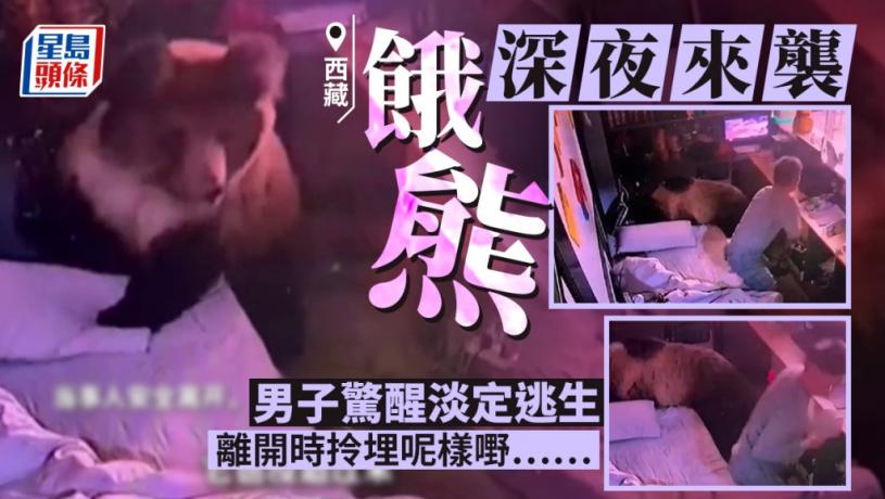 近日,內地網絡一段「棕熊深夜闖西藏某酒店,嚇醒前台熟睡男子」影片引發關注。