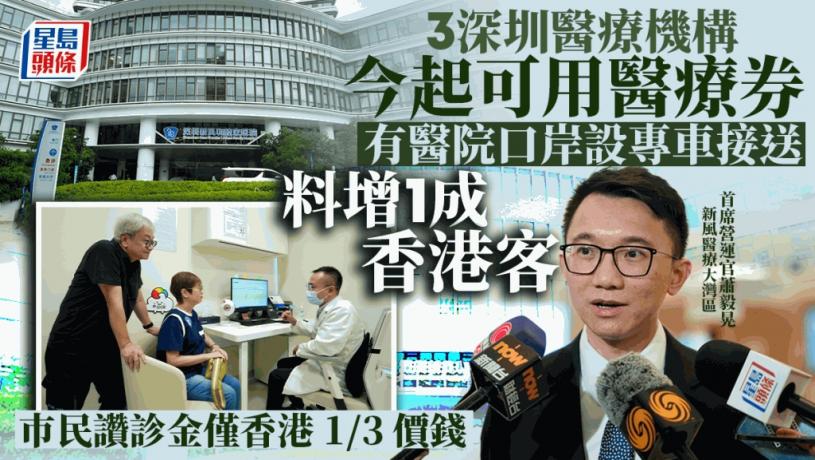 新風醫療大灣區首席營運官蕭毅晃表示,醫院現時約2成客人是香港客戶,當中約6至7成是65歲以上的長者,預計在醫療券適用後,香港客戶可增至3成。他提到,為了讓2000元醫療券「好用一點」,醫院針對醫療券推出專屬優惠,專科或全科的診費只需人民幣200至400元,「做一些慢病管理,看個全科,每年洗牙,有些覆診可能隔月來一次,其實都夠用。」他亦說,會確保就診時間有20至30分鐘,讓患者有足夠時間交代病情,令醫生作出適當診斷和後續治療方案。