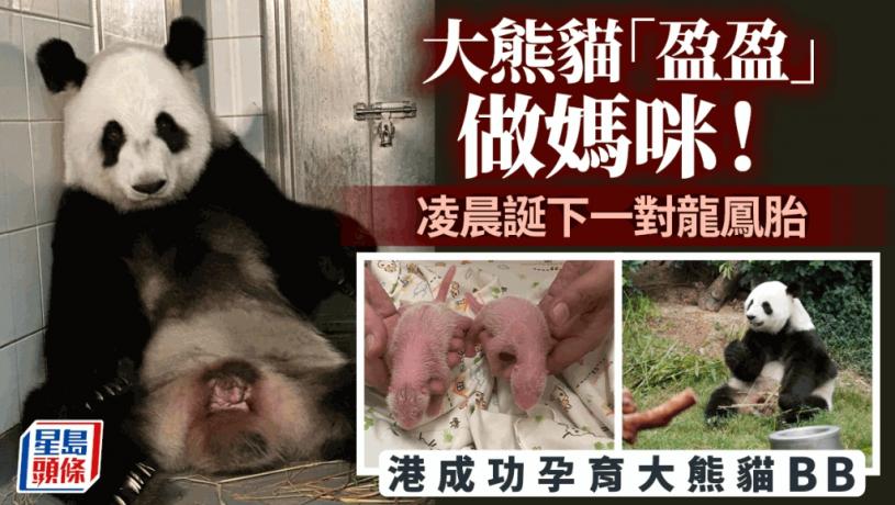 特區政府今日(15日)公布,中央政府於2007年贈送予香港特區的一對大熊貓「盈盈」和「樂樂」,今年三月於海洋公園成功完成自然交配。「盈盈」經過近五個月的孕育期,於今日凌晨2時05分及3時27分誕下一對龍鳳胎。