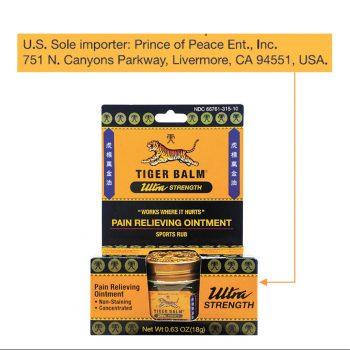 長方形外盒虎標萬金油,上面印有US Sole Importer : Prince of Peace即是經FDA核可有保障正貨!!