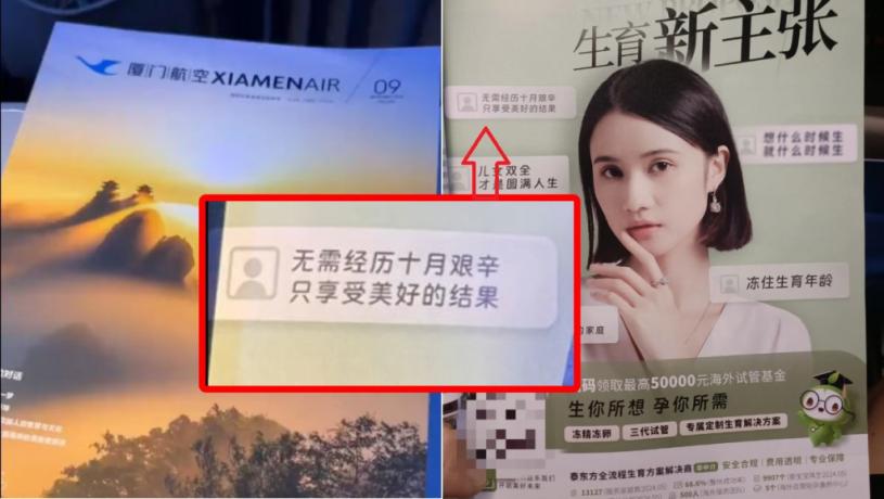 廈門航空有乘客發現,航班上提供的官方雜誌,出現疑似代孕廣告,引發外界質疑。廈門航空新聞部回應指,雜誌由分公司所做,現已全部下架,並正核實情況。