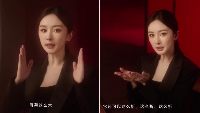 華為Mate XT預告片,楊冪透露機身可摺疊。