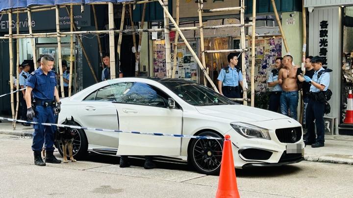警方拘捕赤膊男子,在平治車上檢獲毒品。蔡楚輝攝