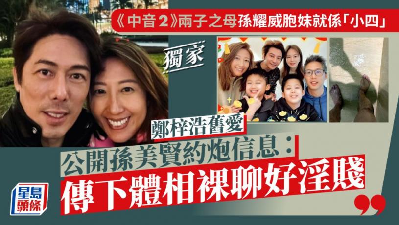 《星島頭條》昨天獨家踢爆55歲「中2生」鄭梓浩(Brian、原名鄭家駒)的賤男真身,全城齊估包養他的圈中猛料「小四」身分,謎底獲鄭梓浩舊愛Grace解開,原來是曾參加《中音2》的孫耀威餅印胞妹、43歲已婚及育有兩子的孫美賢(DaDa),真係中年好鬼亂。相識第一日孫美賢已𥄫中用名牌糖衣包裝的型男大叔鄭梓浩,相當進取玩裸聊,男方以「下體相」回禮,慾火焫著女方租酒店幽會又出錢租屋包養。手揸兩人約炮信息及聯名租約的Grace更爆鄭梓浩食完唱笑孫美賢:「佢成個阿婆咁,搞我都搞我『唔起』。」記者聯絡孫美賢有關小四指控報道,截稿前未有回覆。採訪:曾盻堅