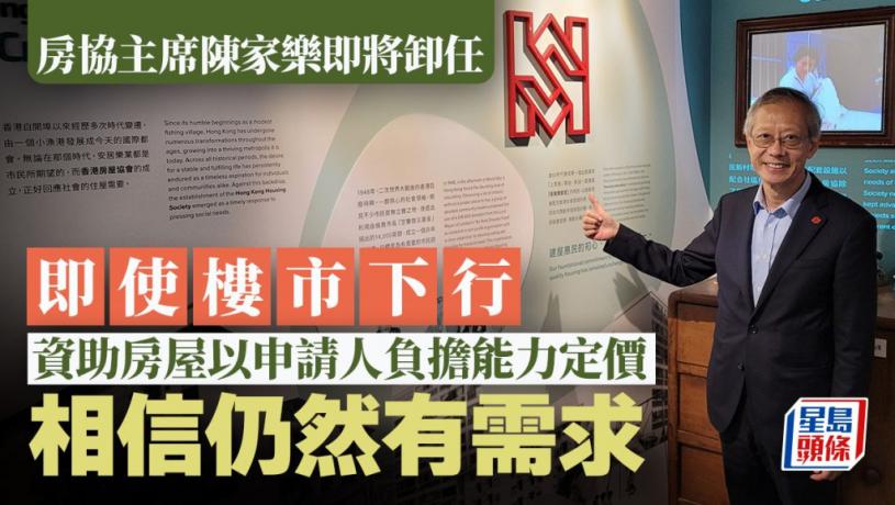 香港房屋協會本周五將舉行委員大會,並選出新一屆正副主席。現屆主席陳家樂卸任在即,他以「乘風破浪,再創高峰」及「史無前例」總結6年主席任期,認為房協「肯嘗試、敢創新」,希望接班人能無忘初心繼續做好「房屋實驗室」的角色。他又指,房協目前的財政狀況穩健,「仲係正數」,正安排銀團貸款應付短期現金流需要,進度已經「八八九九」。被問到樓市下行會否影響現金回流,他指資助房屋以申請人的負擔能力定價,始終會有一定折扣,加上按揭擔保首期較低,相信仍然有需求。