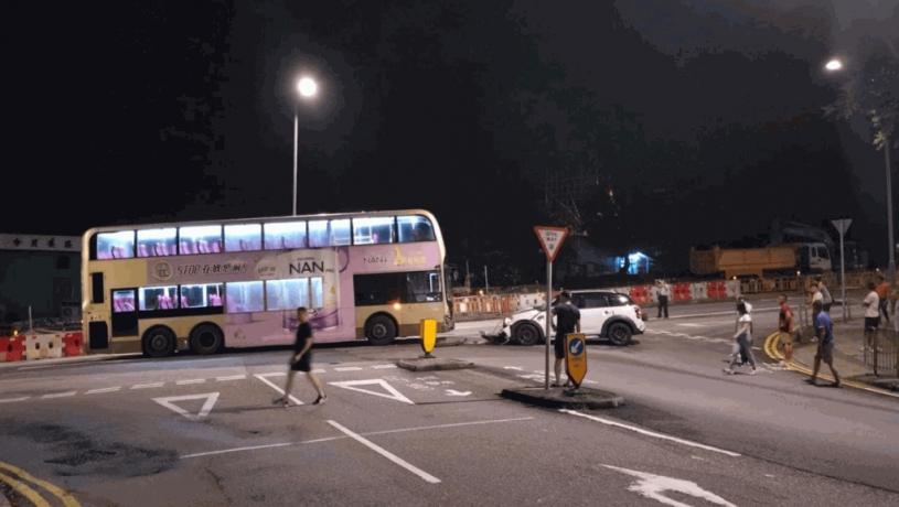 今日(8日)晚上7時許,一輛九巴沿柴灣環翠道行駛,至翡翠道對開時,與一輛白色私家車迎頭相撞,幸意外中無人受傷,警方正調查車禍原因。根據網上圖片,九巴車頭輕微損毀,至於白色私家車泵把甩脫,零件碎片散落一地。