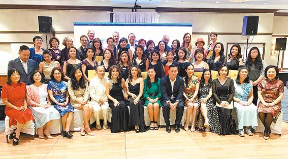 美國華裔婦女協進會7日在法拉盛舉行理事會交接儀式暨第一屆傑出華裔女性成就獎頒獎典禮,謝嘉燕與新任會長馮子馨,理事會成員及顧問合影。