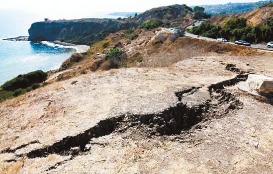 山體滑坡加劇導致帕洛斯維迪斯大道南沿線形成一條巨大裂縫。洛杉磯時報