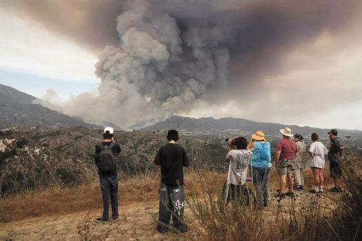 居民觀看特拉布科峽谷火勢迅速蔓延的「機場山火」。AlertCalifornia