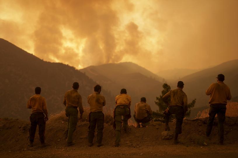 消防員在營救聖伯納丁諾縣的「賴恩山火」。美聯社