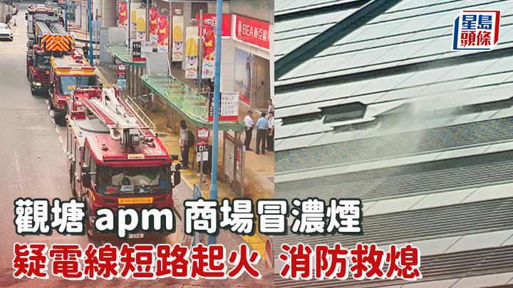 觀塘apm商場發生火警。今日(12日)早上約8時,警方及消防接報指apm商場有濃煙冒出。現場是觀塘道418號,救援人員趕到現場,發現火警位置是11樓一超市擺放貨物的貨倉單位,於是開喉灌救,瞬間將火救熄。惟燶煙籠罩走廊、電梯口和樓上多個樓層,人員於是疏散11樓至18樓的上班人士,到樓下大堂暫避,等待濃煙消散後再返回樓上。消防員經調查,初步相信是電線短路釀禍,事件中無人受傷。