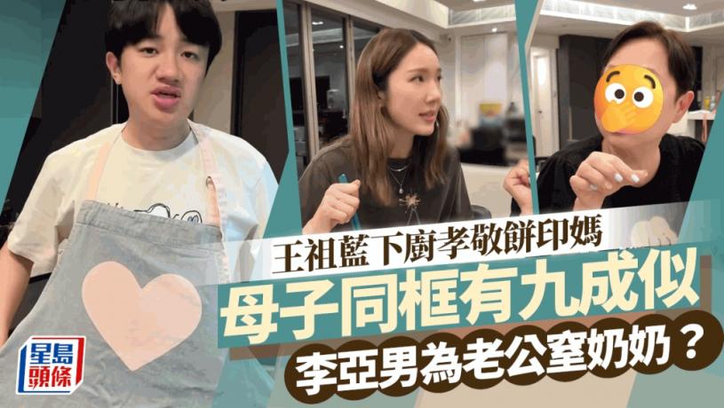 王祖藍早前曾曝光四代同堂照,驚見全家都非常似樣。而日前王祖藍於IG分享為母下廚的影片,他的餅印媽媽都有入鏡。王祖藍為了媽媽下重料,連落酒都很重手,王母都指酒味太濃,而且鹽下得太少,略嫌不夠鹹。不過王祖藍即獲李亞男力撐:「但我覺得清淡比太鹹,好多了!」她更舉起手指公大讚老公的廚藝,而在旁吃炒飯的女兒都支持爸爸:「我們要吃得清淡。」