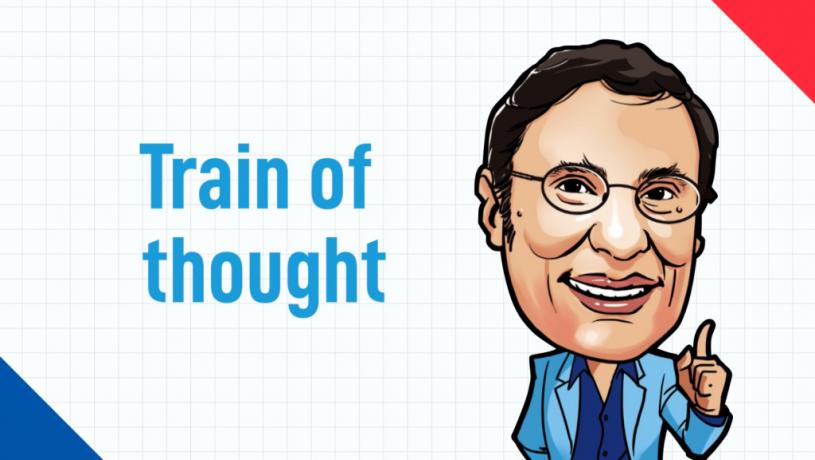 現正爭取美國總統第二個任期的前總統唐納德‧特朗普,在演講或受訪時都經常會思路(train of thought)中斷。八十一歲的總統祖‧拜登,是歷來年紀最大的美國總統,他也會因為年事已高而有時思路(train of thought)中斷。六月他跟特朗普進行選舉辯論之時,就不時亂了思緒(train of thought),忘了自己要說甚麼。民主黨的領袖們成功勸退了他,讓副總統賀錦麗代他做總統候選人。習語“train of thought”是指你腦海中的思路。