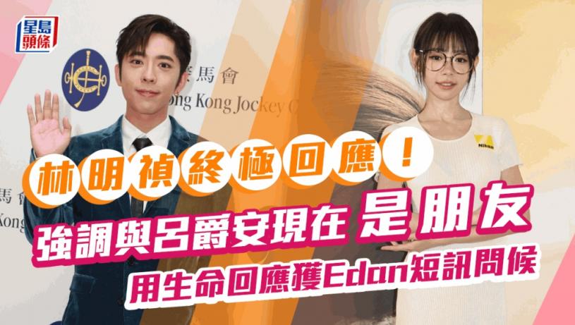 林明禎又說將來真的拍拖不介意公開,但也會尊重對方,笑謂雙方要有共識才會做這件事,不過她對私事一直都很低調處理。林明禎今次來港行程匆匆,明天就要到台灣拍新歌MV,坦言未有機會與呂爵安見面食飯,但二人有以訊息聯絡關心,昨晚出席活動後,呂爵安都有問她「ok嗎?還好嗎?」她則回覆「我挺好」,又說自己都有看昨晚的訪問,笑言真的是用生命回答,很怕講錯說話,要考慮很多單位,雖然與Edan現在是朋友,但很多網民都不相信,林明禎說:「我們現在是朋友,未來有很多不確定性,每個人都有自己的觀點,清楚自己在做甚麼最重要,希望大家多關注我的作品,我很用心去做,新歌推出後都會回來香港宣傳,之後又會到馬來西亞拍戲。」
